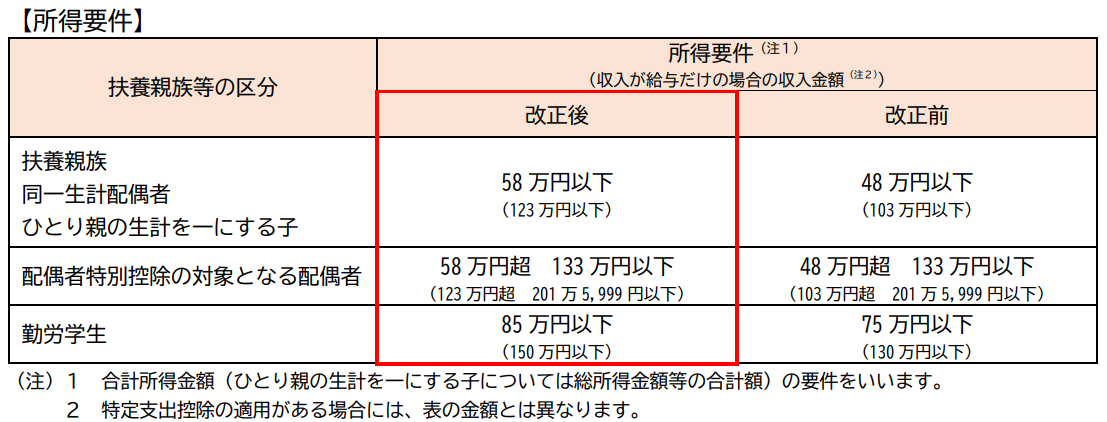 今回は、「扶養親族等の所得要件の見直し」、「年収の壁の変更点まとめ」の2点を解説します。