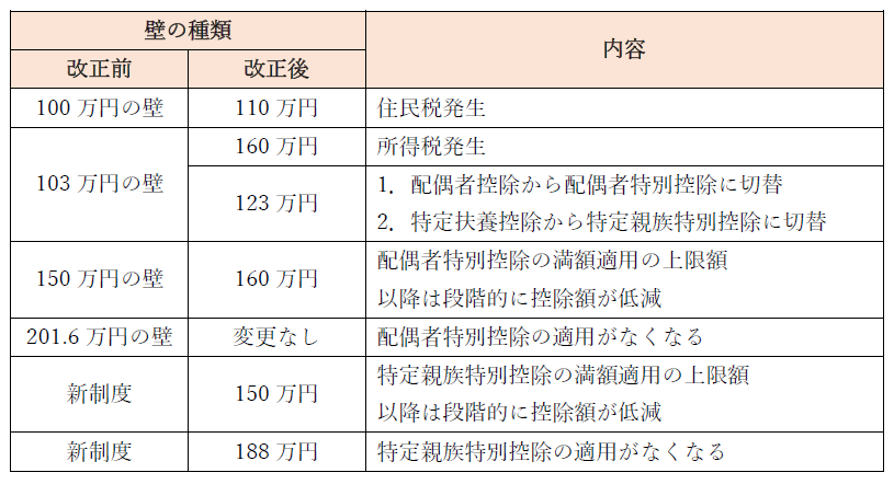 年収の壁に関する変更点や注意事項をまとめると、以下の図となります。